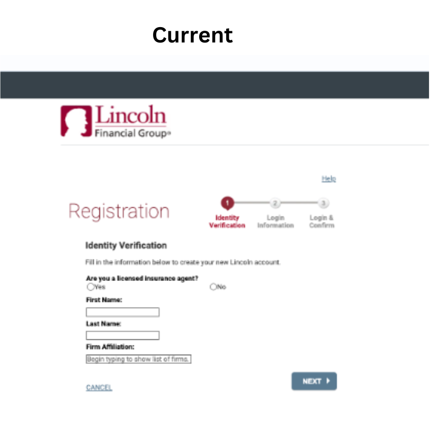 To address this challenge, I recommended a redesigned layout aimed at streamlining the registration process. The proposed solution involves an initial step soliciting only the user's email, followed by a subsequent verification step to confirm the user's financial professional status. The final step entails confirming information and submitting the user's details to the business. This approach aims to simplify the process, making it more user-friendly and enticing, fostering increased user engagement during registration.