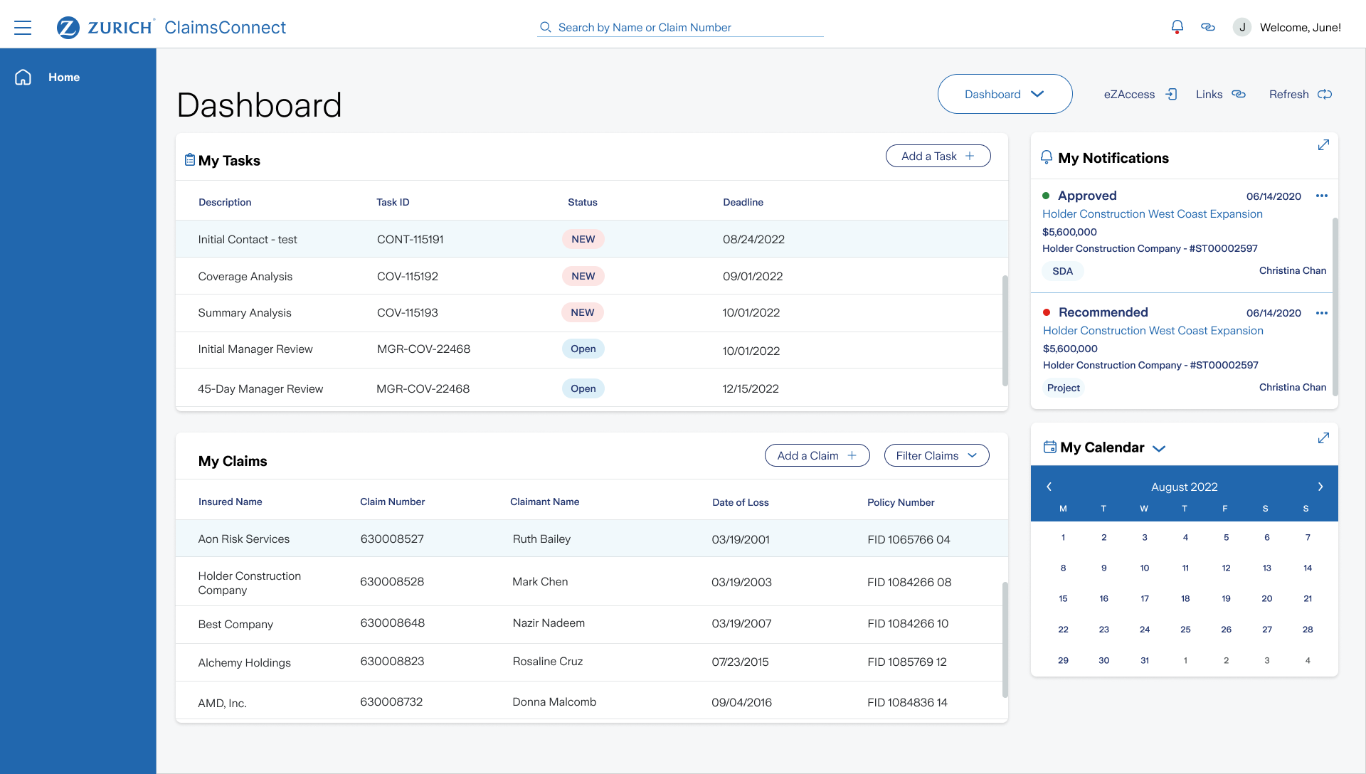 - Uses visual cues to reinforce the user has the correct claim open